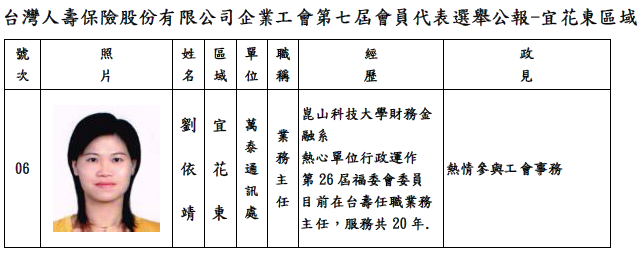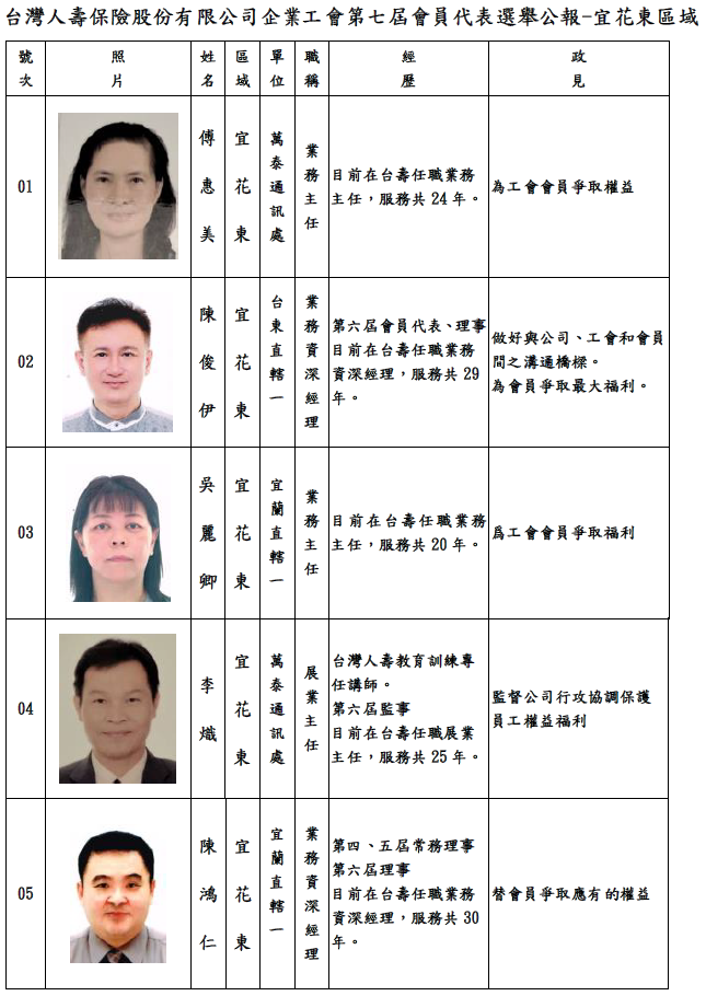 第七屆會員代表選舉-宜花東區域選舉公報